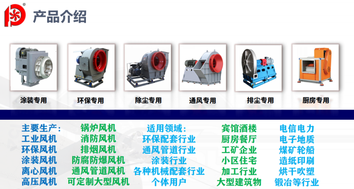 習主席說:綠水青山就是金山銀山!風機的用途十分廣泛,且需求量巨大,是量大麵廣的通用機械,其工業總產值占通用機械行業業的12%。其上遊是鋼鐵和機電行業,下遊主要是電力、冶金、石化、節能環保、建材、民用建築、隧道等。目前全國風機行業裝備水亞,基本上能滿足國民經濟的各種需要根據產品技術含量、chengtaoxingjizaidaxinggongyeliuchengzhongdezhongyaoxing,fengjichanpinkehuafenweizhongdajishuzhuangbeileifengjiheyibangongnengxingfengjiliangdalei。bansuizhewoguogongyehuahechengzhenhuadebufa,fengjixingyejiangjixuwenbufazhan,yujiweilai10年,重大技術裝備類風機市場的年增長率在15%左右,中低端風機市場的年增長率在10%左右。