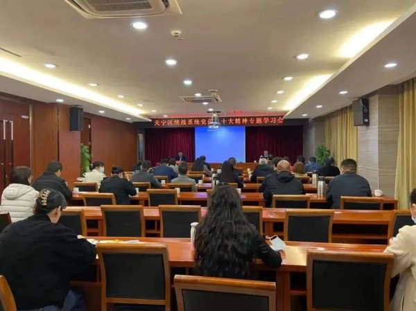 11月17日,天寧區統戰係統召開黨的二十大精神專題學習會,區委常委、統戰部部長倪雲澤領學,各民主黨派天寧區基層委負責人、天寧區僑聯、知聯會、新聯會、歐美同學會相關負責同誌、各基層商會秘書長、開發區、鎮、各街道統戰委員以及區委統戰部、區工商聯全體工作人員參加學習會。